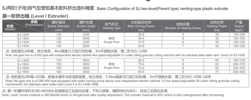 SJ兩階排氣型塑料擠出造料機(jī)組